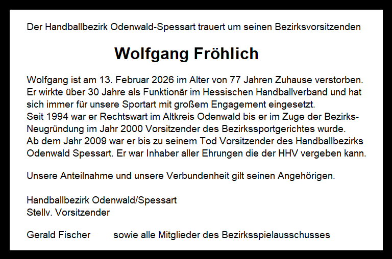 Der Handballbezirk trauert um Wolfgang Fröhlich